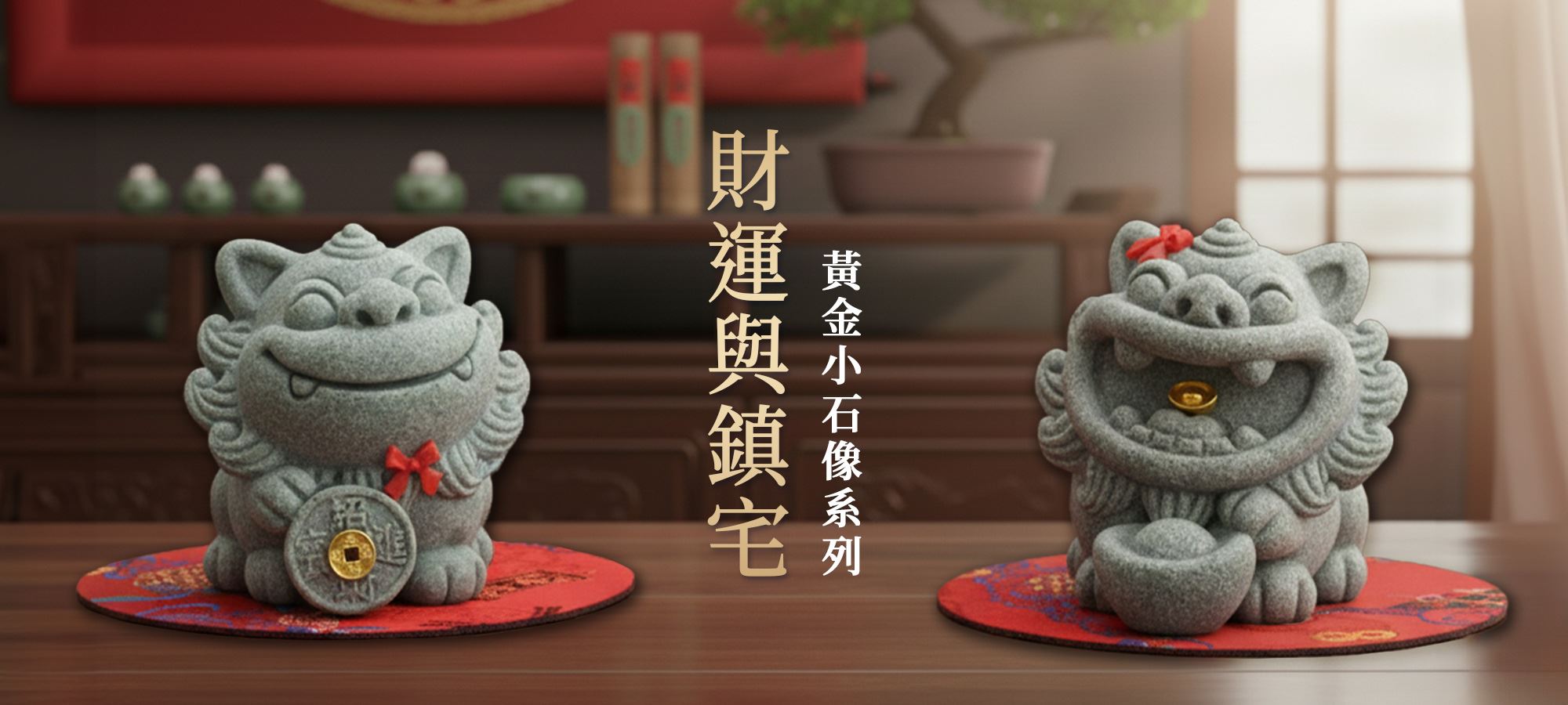 【獨家設計】古錢鎮宅石獅子 純金擺件 ...