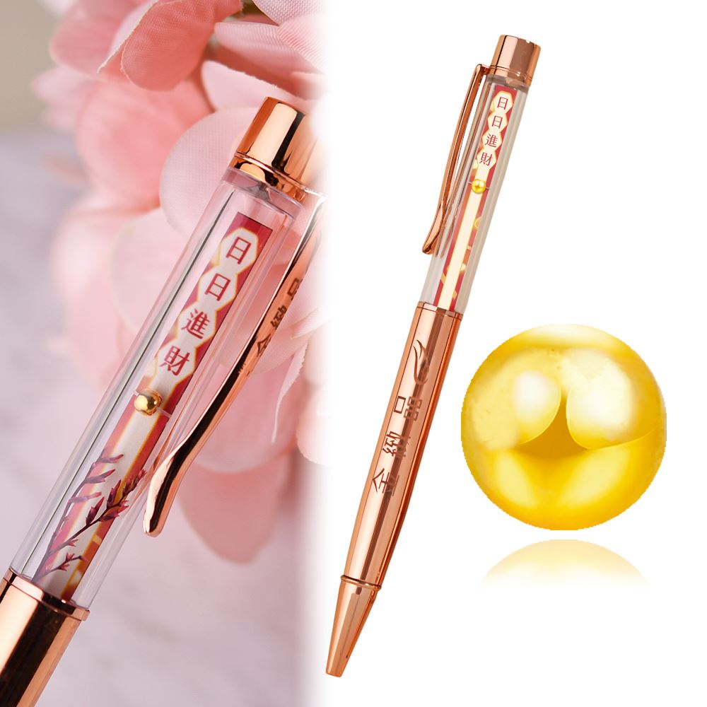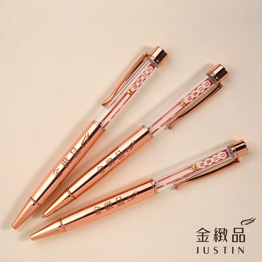 質感玫瑰金筆身,每隻筆皆有純金珠搭配籤詩語