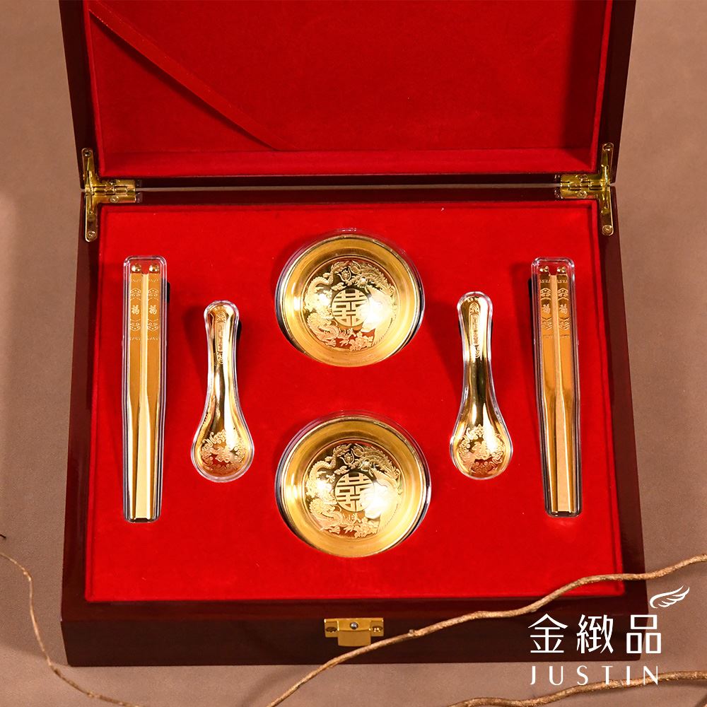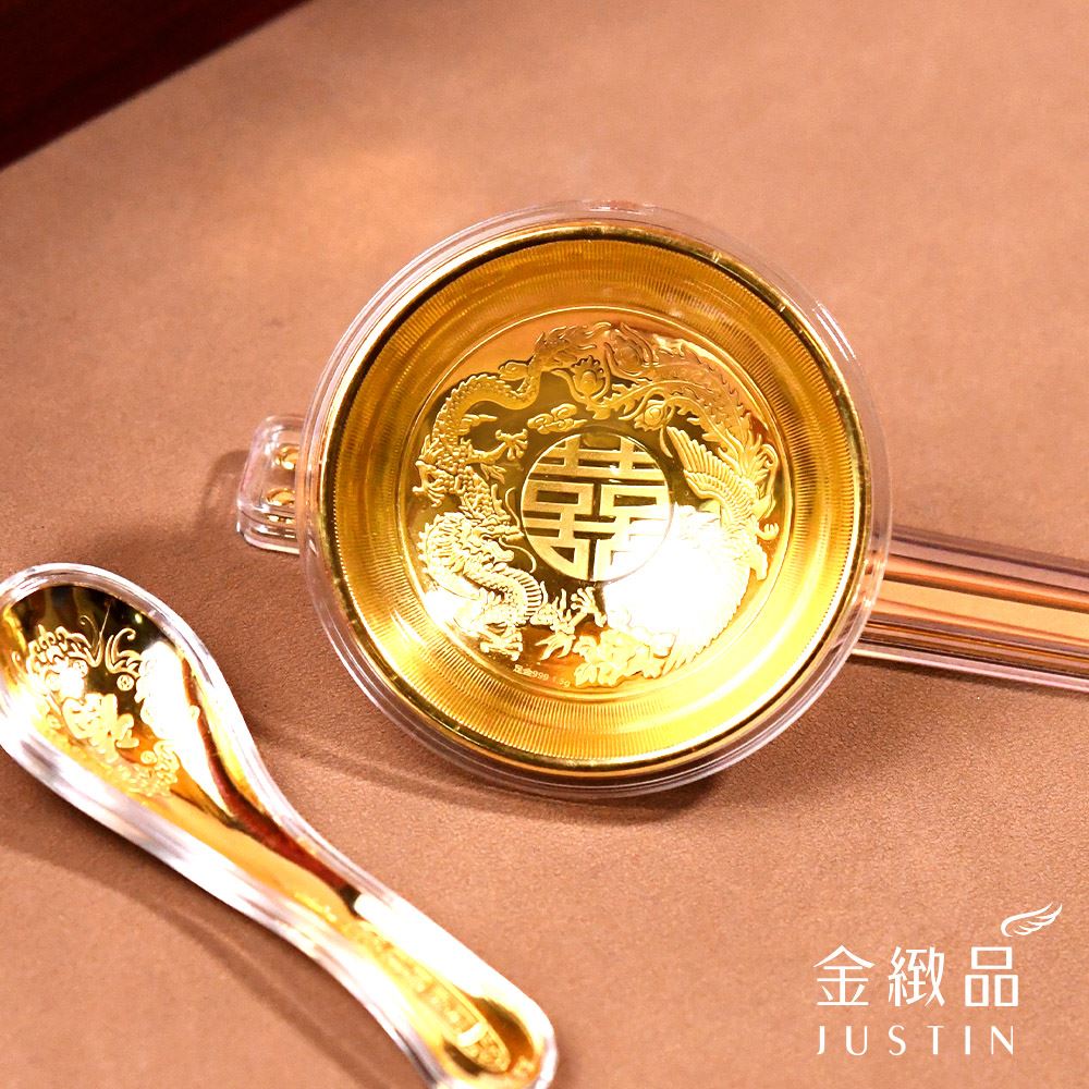 黃金擺件 龍鳳雙囍金碗筷勺 1.6錢