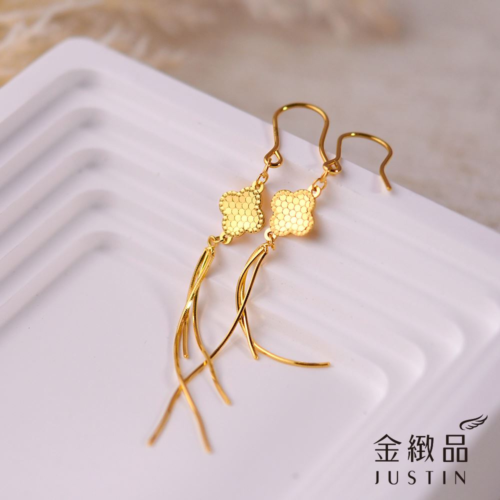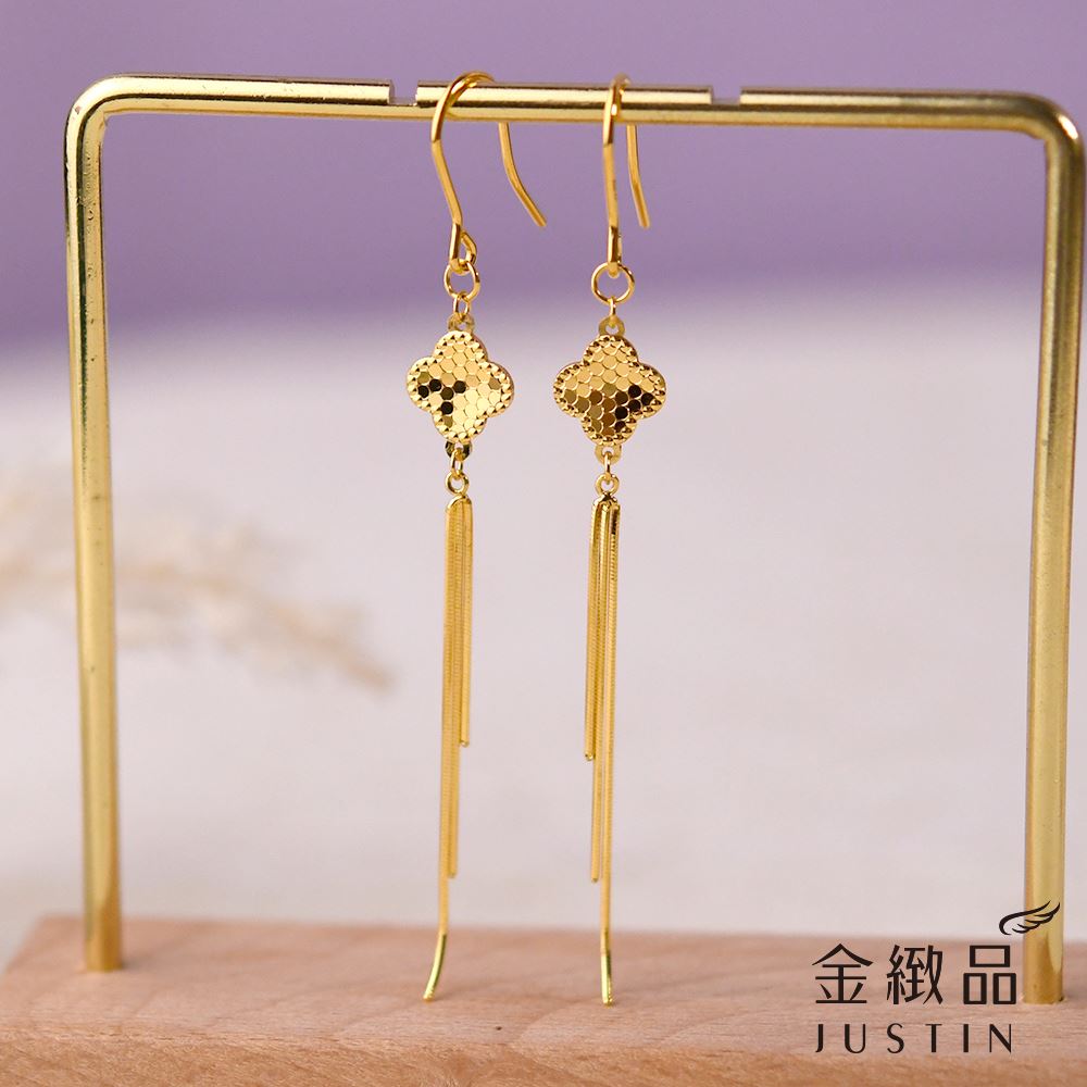 黃金垂吊耳環 亮片四葉 5G 0.87錢