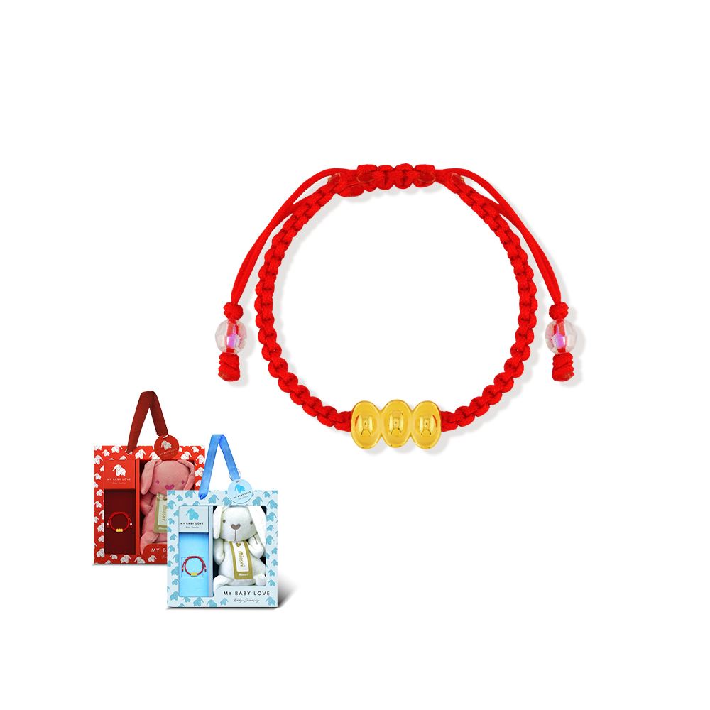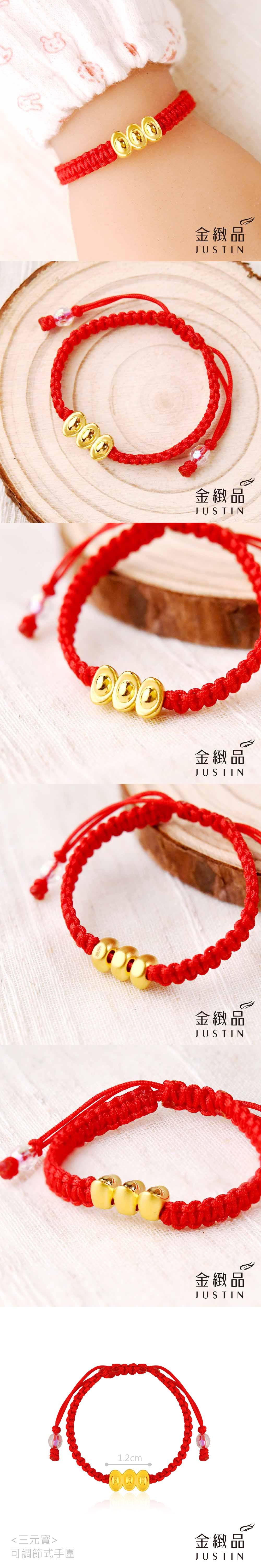 黃金兒禮 三元寶 紅繩手鍊 0.23錢