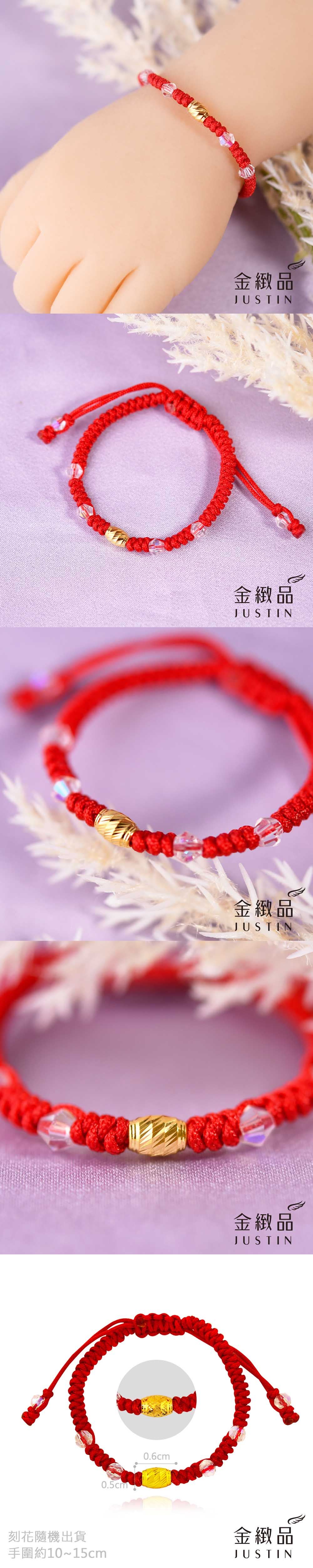 黃金兒禮 小福桶 紅繩手鍊 0.06錢 刻花隨機
