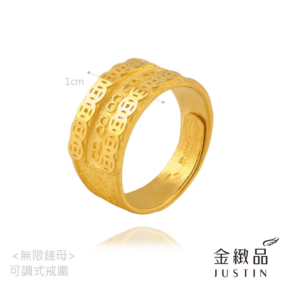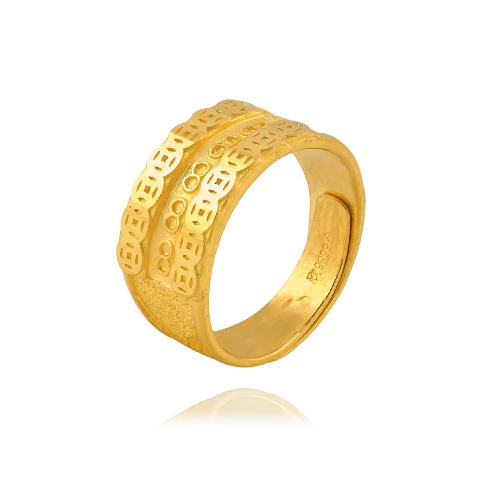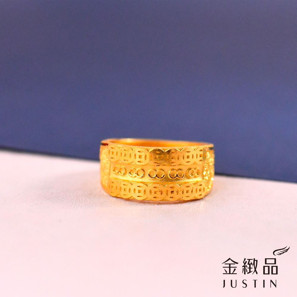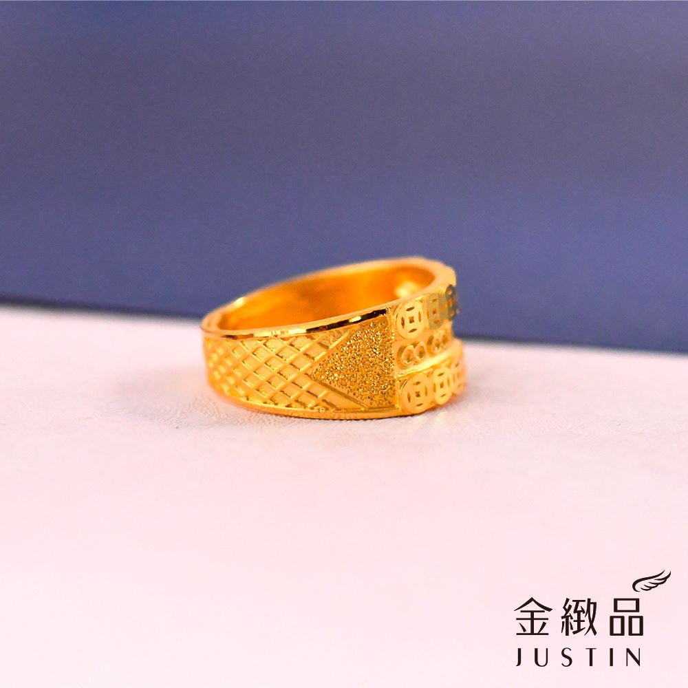 獨特的噴砂工藝搭配亮面錢紋設計,讓黃金呈現出豐富的視覺層次。