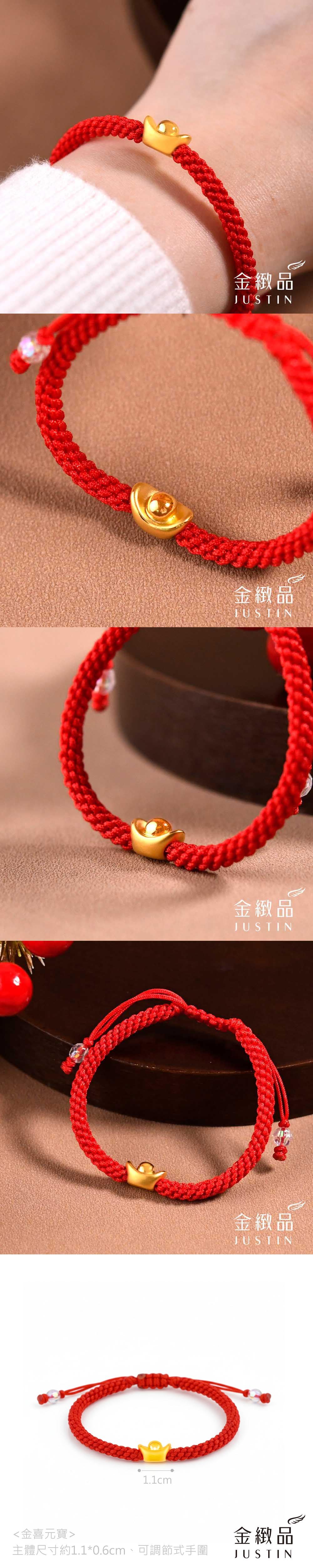 黃金紅繩手鍊 金喜元寶 0.12錢