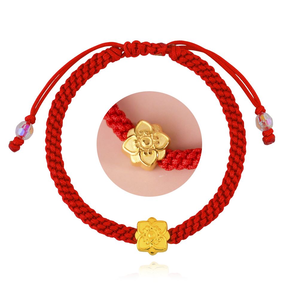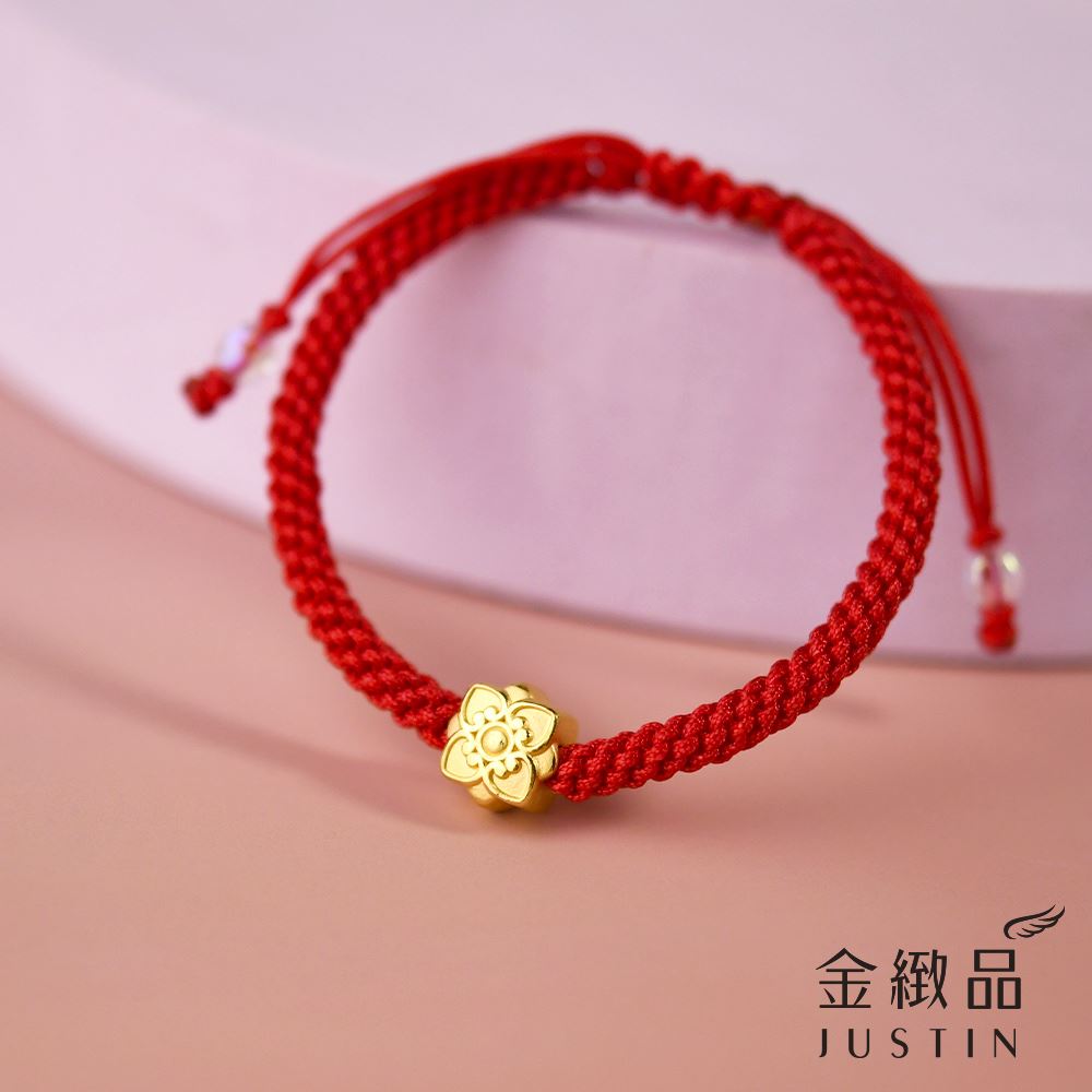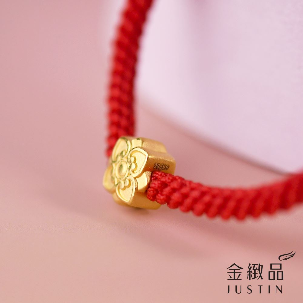 綻放的花朵搭配紅繩,象徵祝福與喜氣