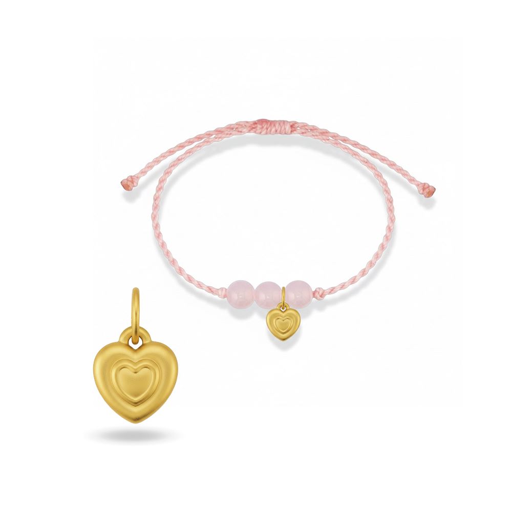 晶瑩剔透粉水晶搭配金愛心,是吸引人緣與桃花的代表