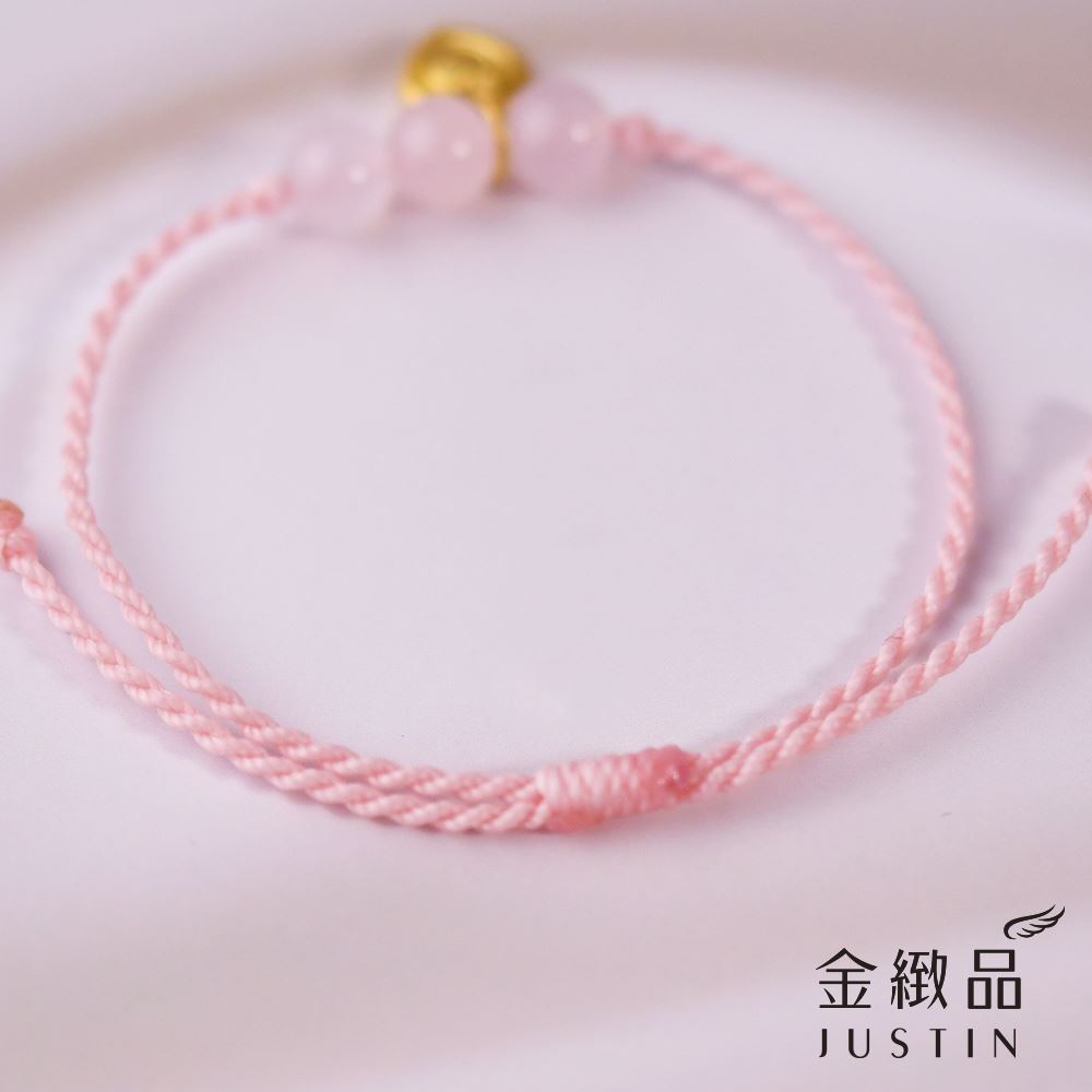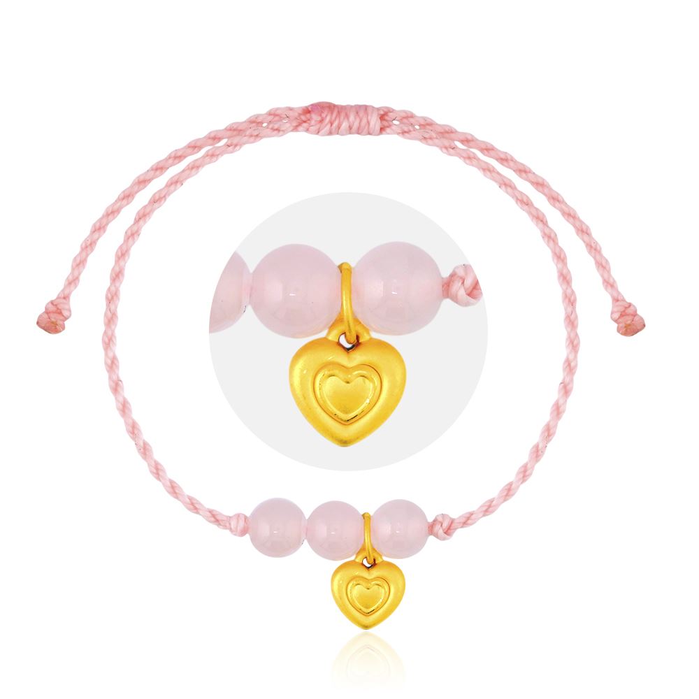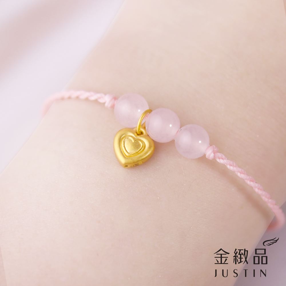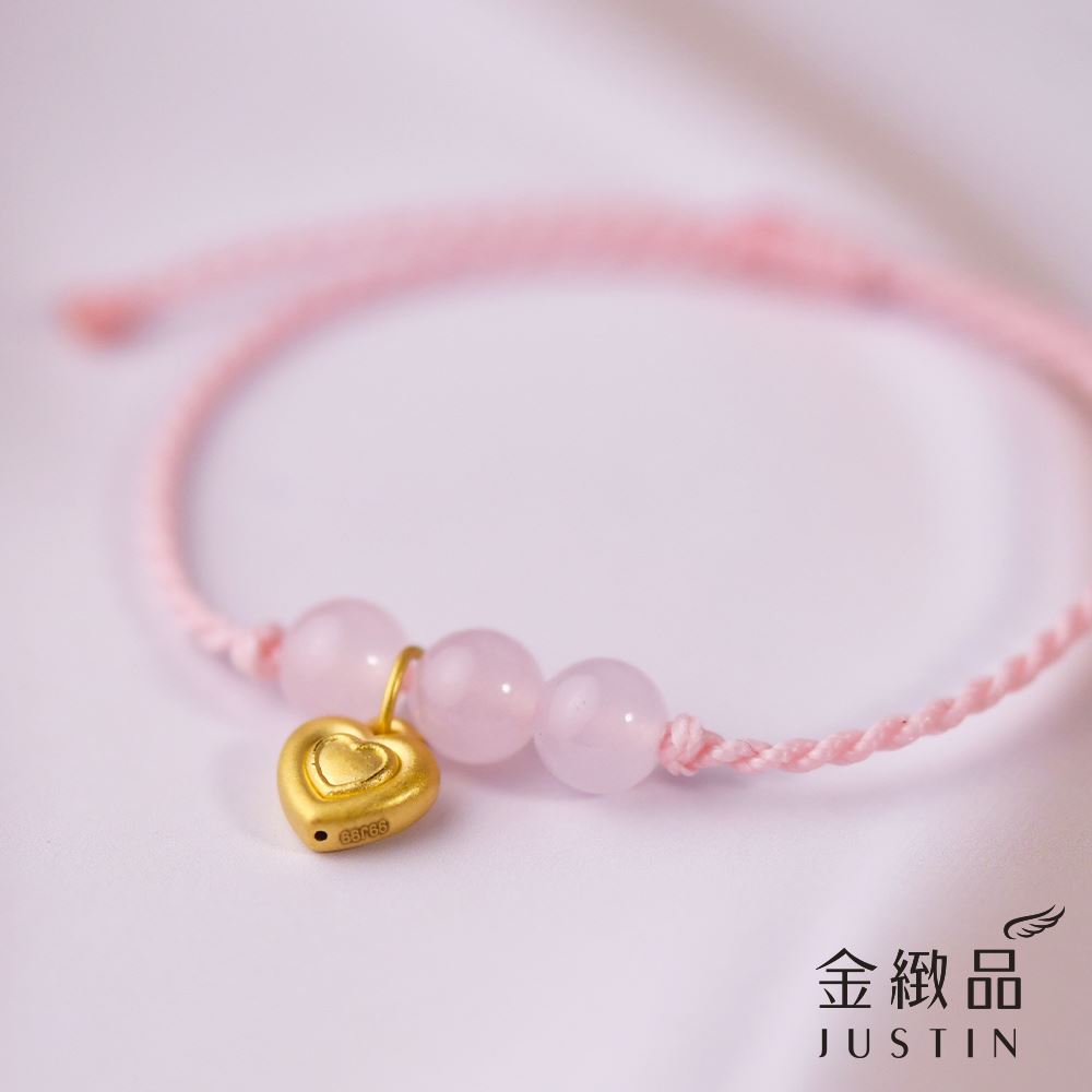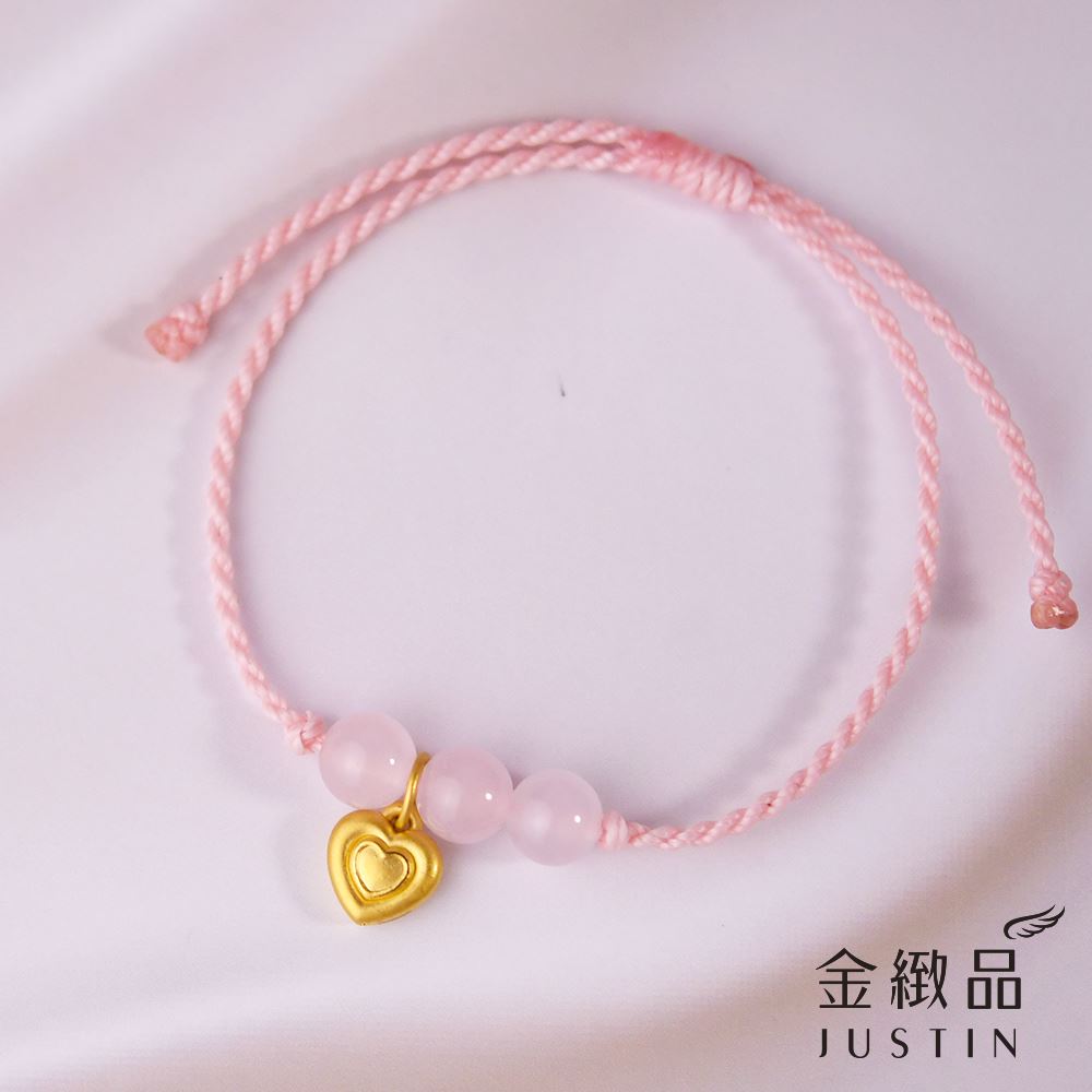 晶瑩剔透粉水晶搭配金愛心,是吸引人緣與桃花的代表