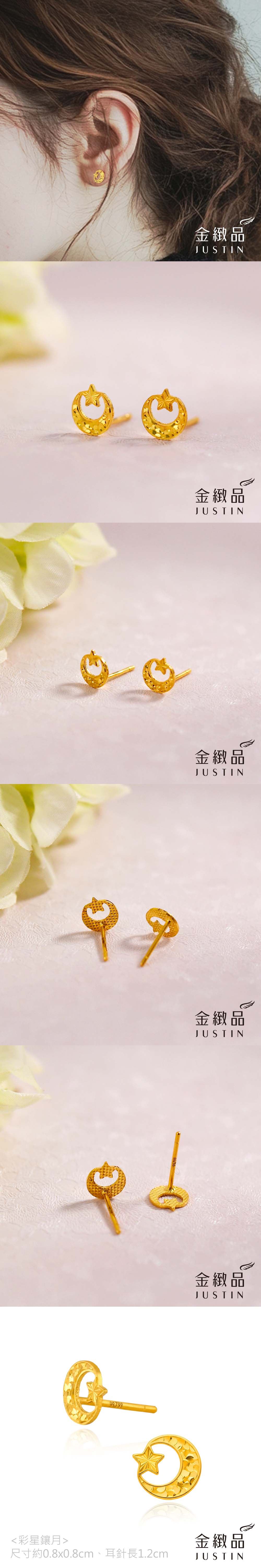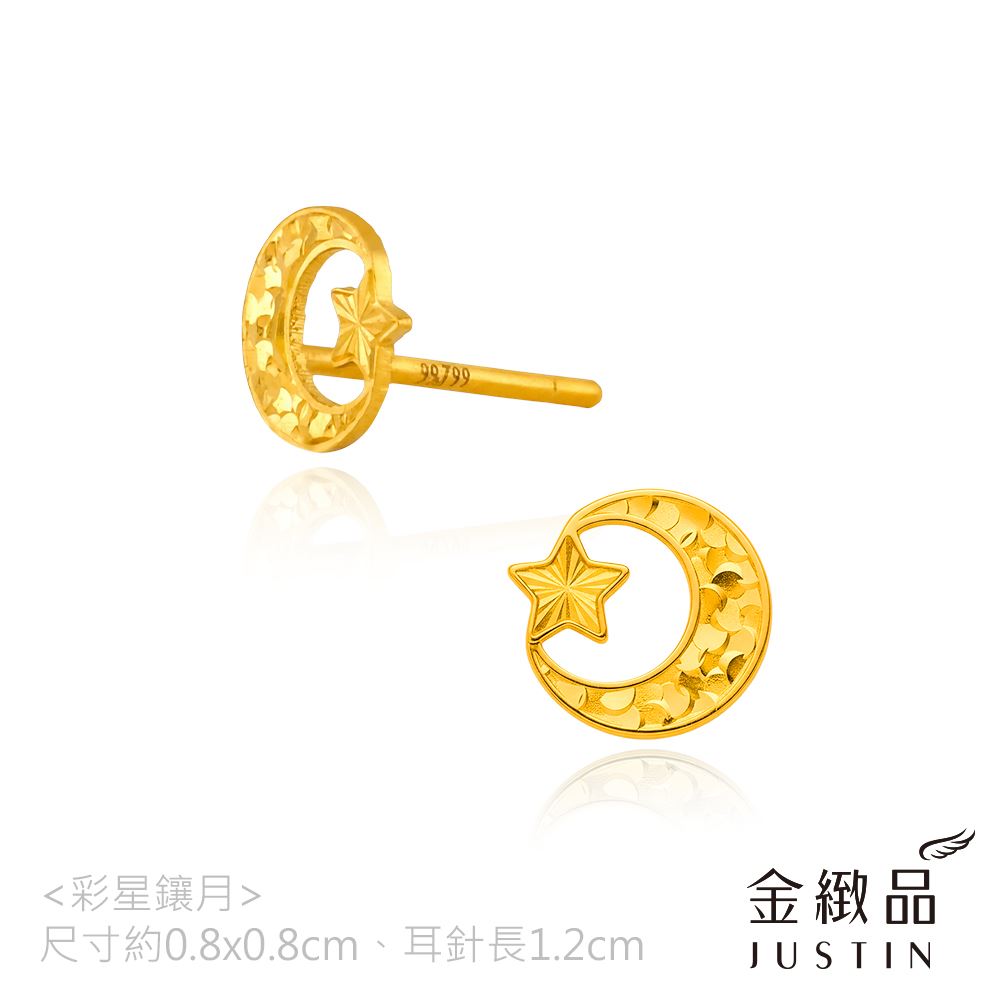 黃金耳環 彩星鑲月 0.22錢 5G