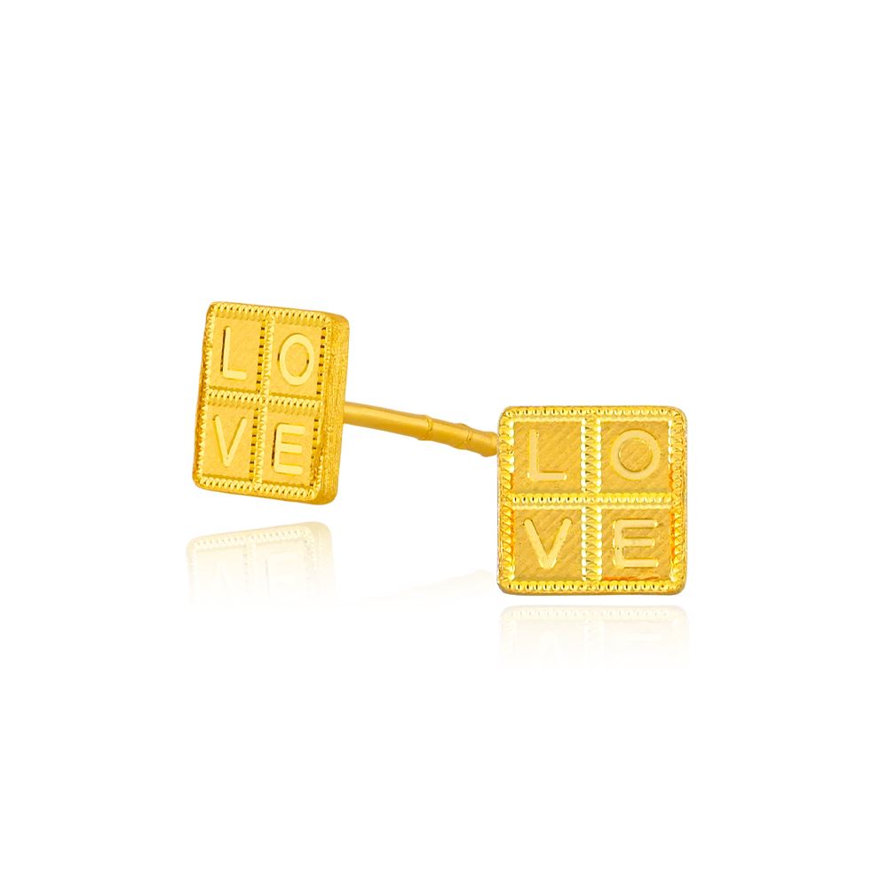 黃金耳環 LOVE拼字方塊 5G 0.4錢