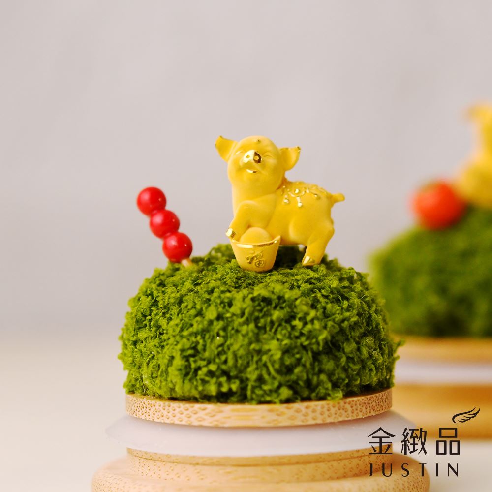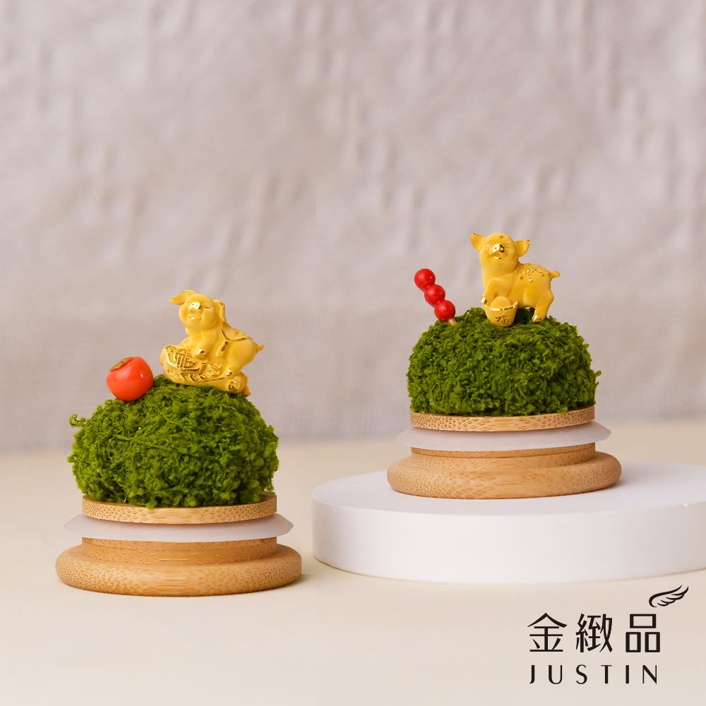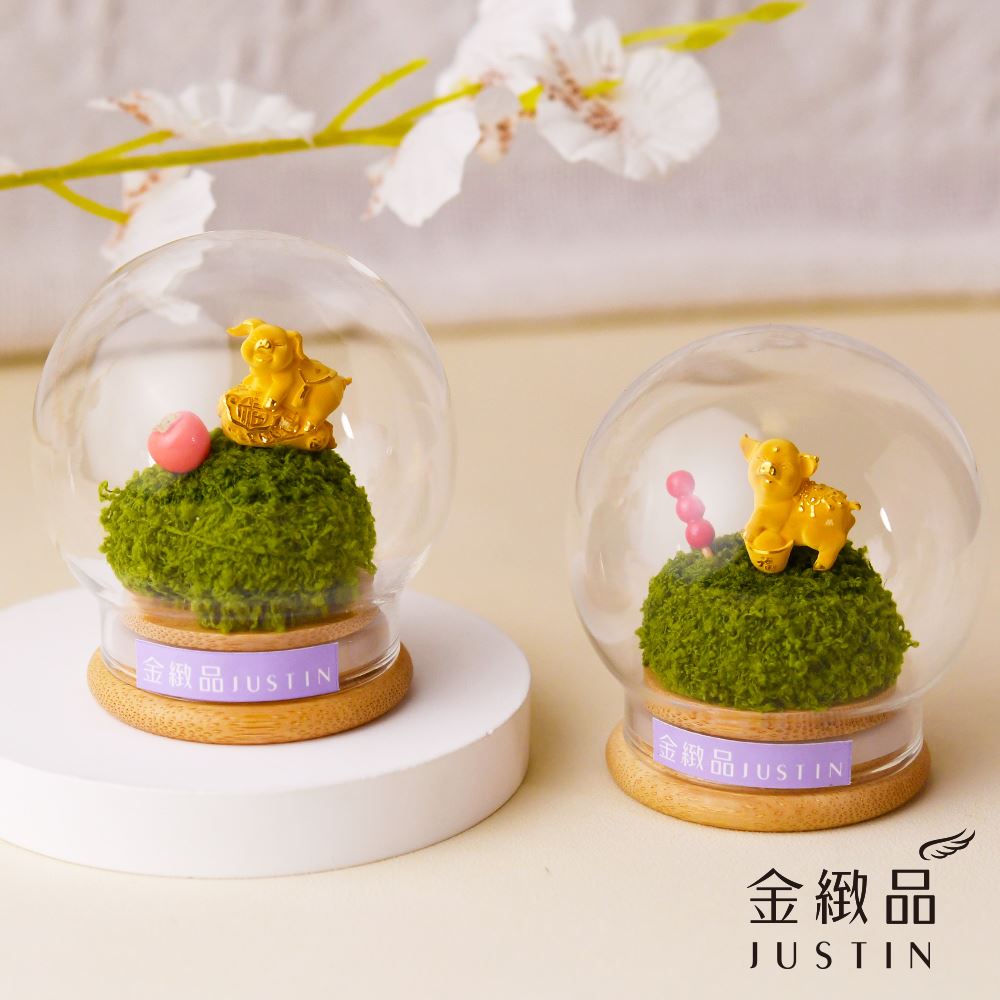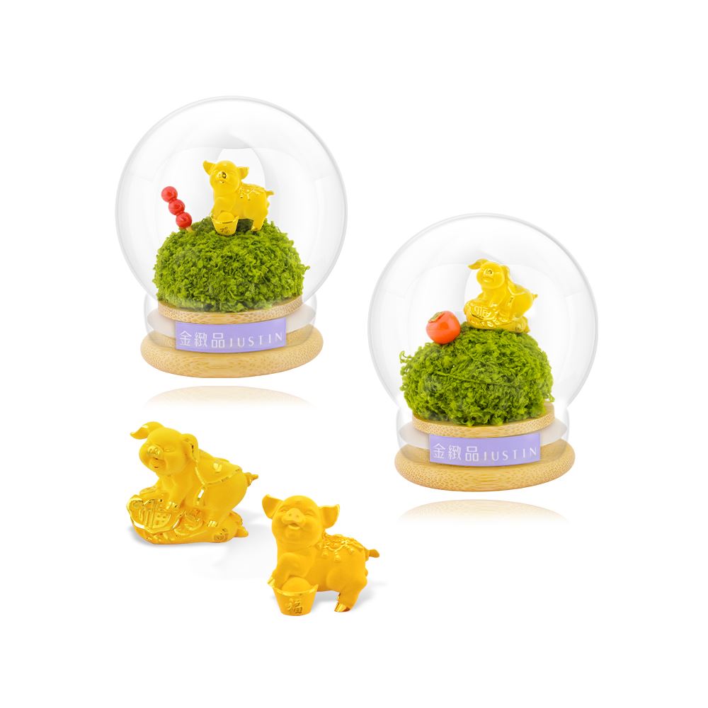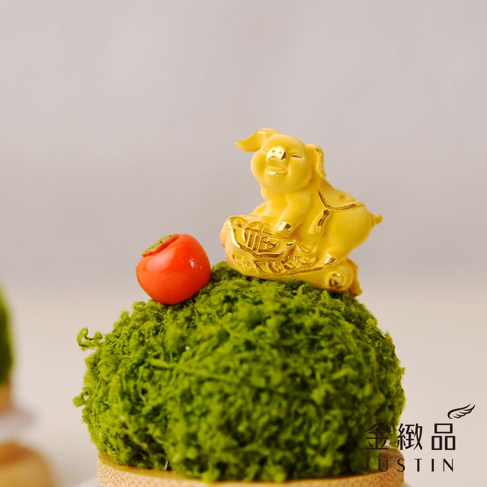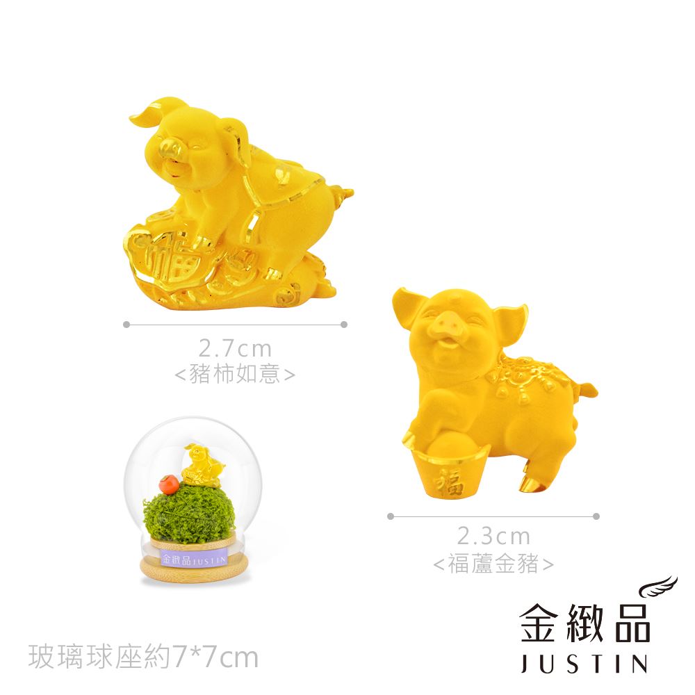 【獨家設計】豬柿如意 福蘆金豬 玻璃球座 純金擺件 0.27錢