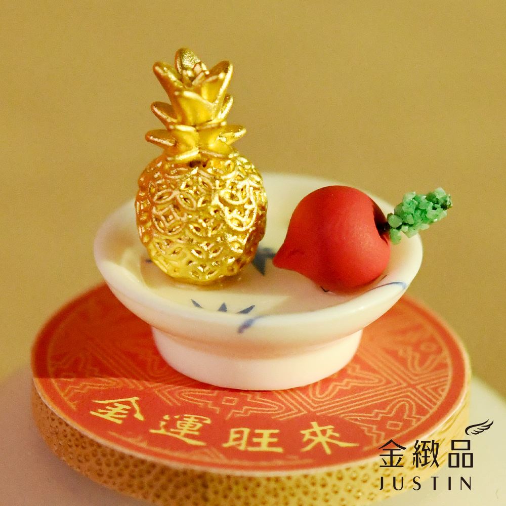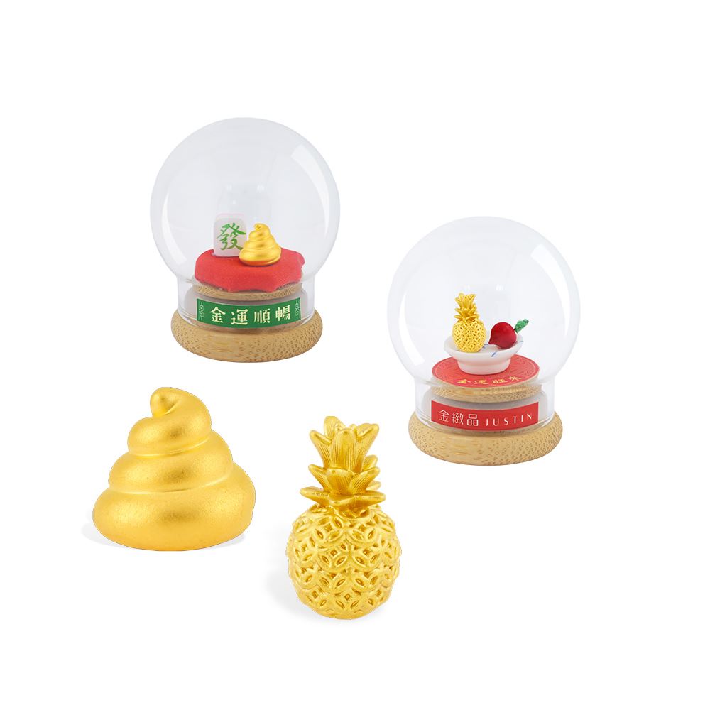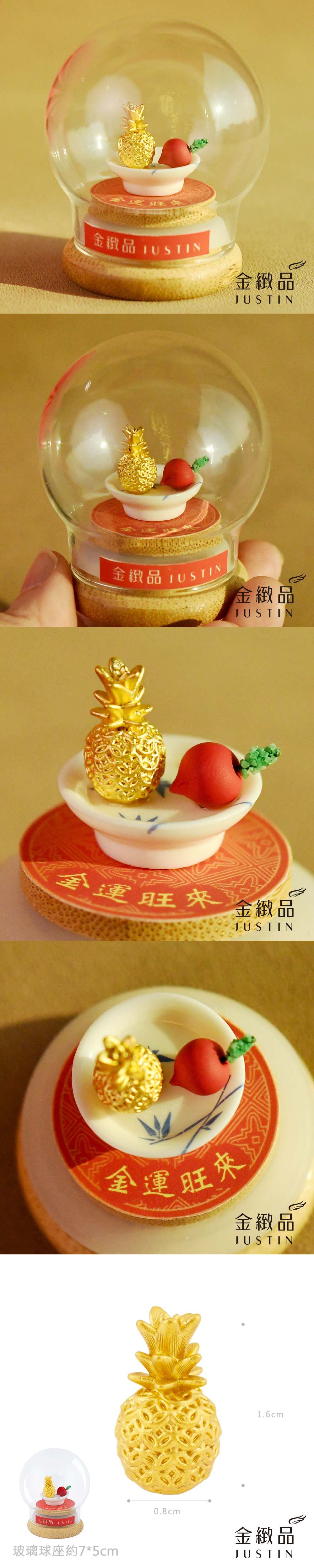 【獨家設計】金運旺來 玻璃球座 純金擺件 0.27錢 多選 鳳梨 大便