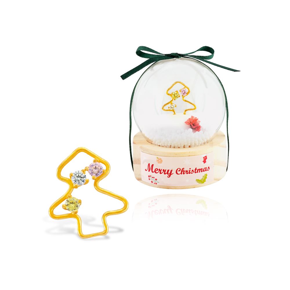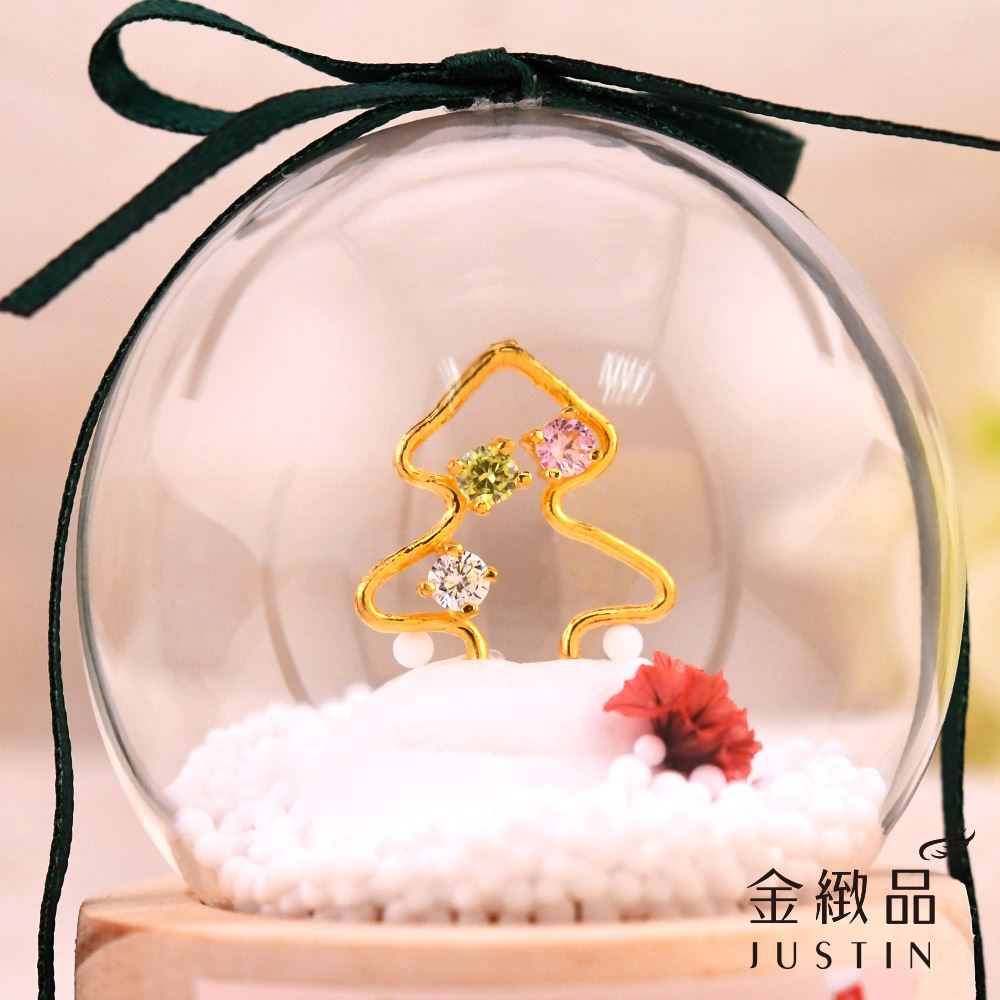 【獨家設計】閃亮許願樹 玻璃球座 純金擺件 0.61錢