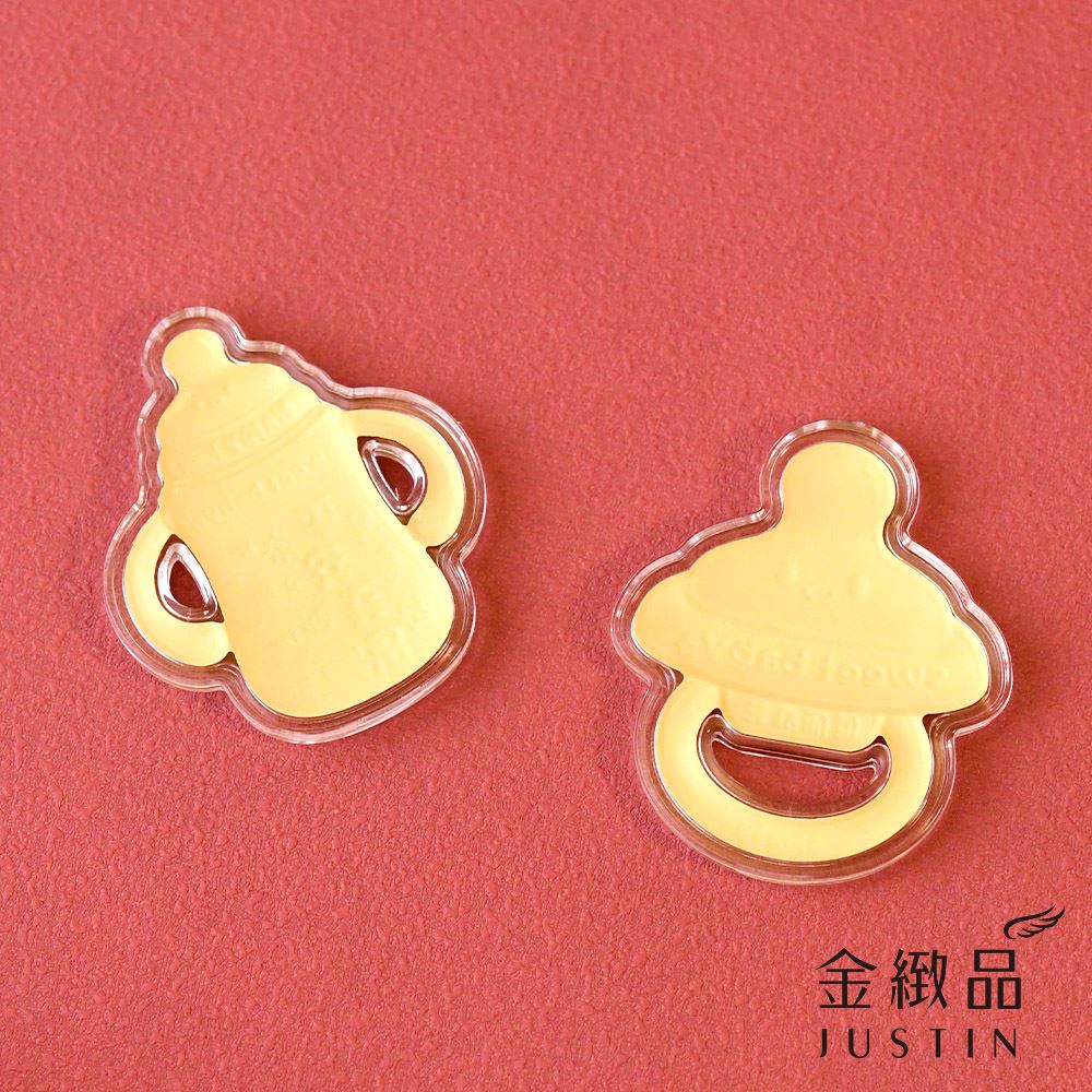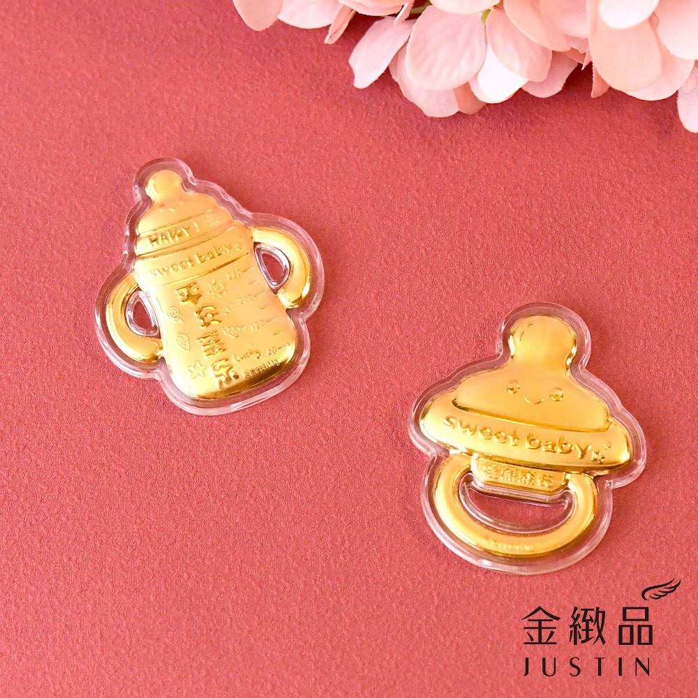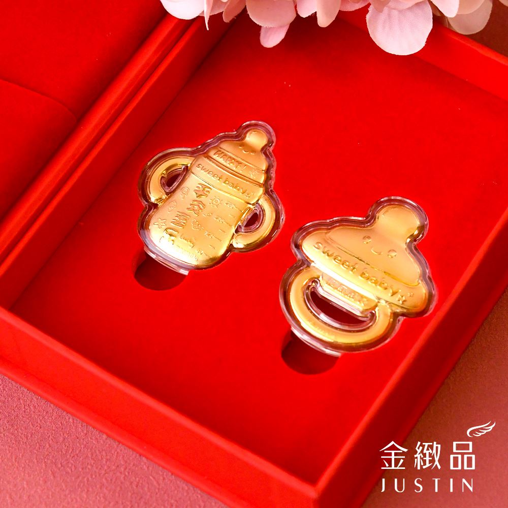 以可愛奶瓶與奶嘴為靈感,將新生的喜悅化作溫潤金飾,