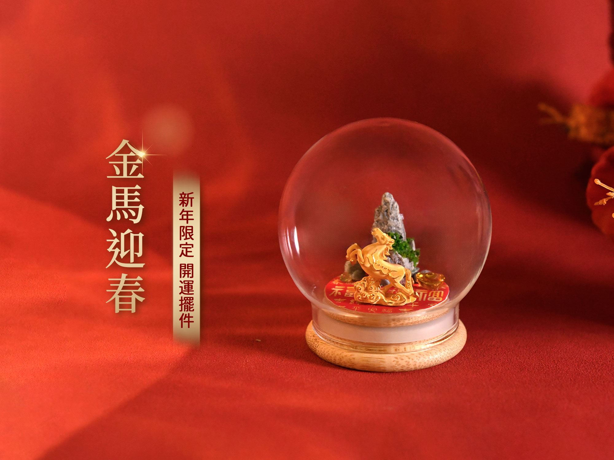 【獨家設計】金馬騰躍 玻璃球座 純金擺...