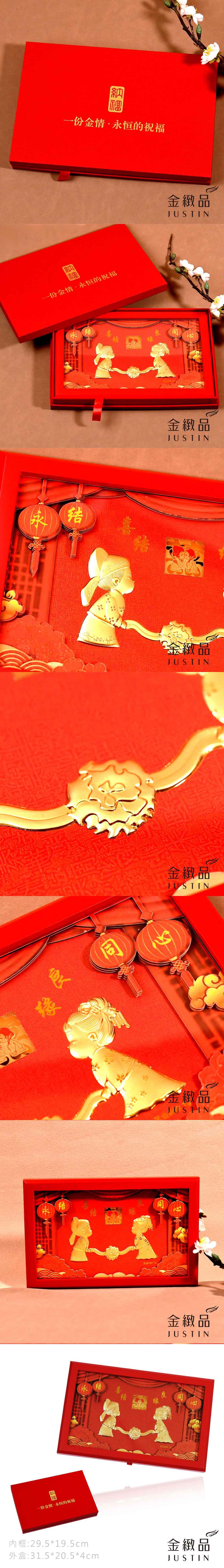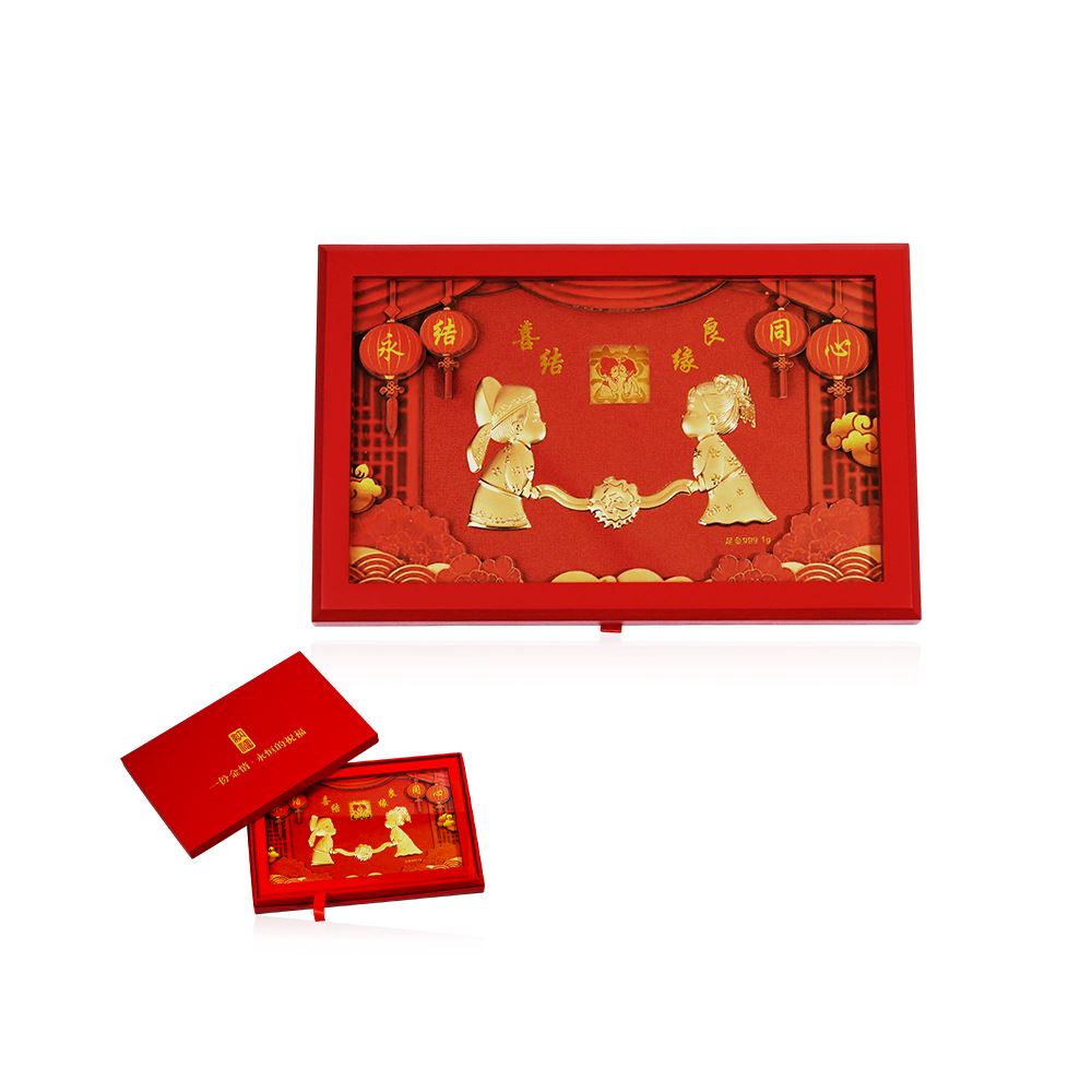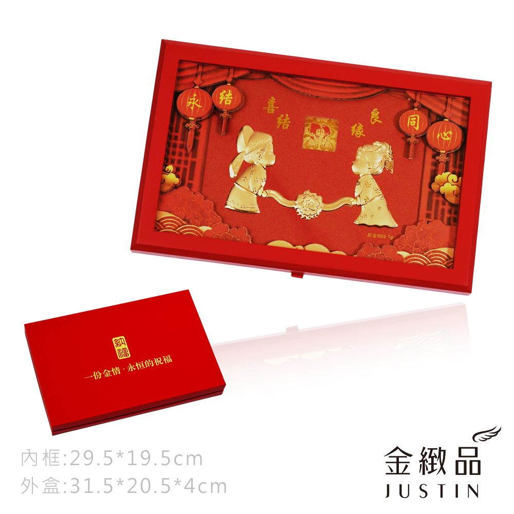 黃金擺件 喜結良緣紙雕畫禮盒 0.27錢