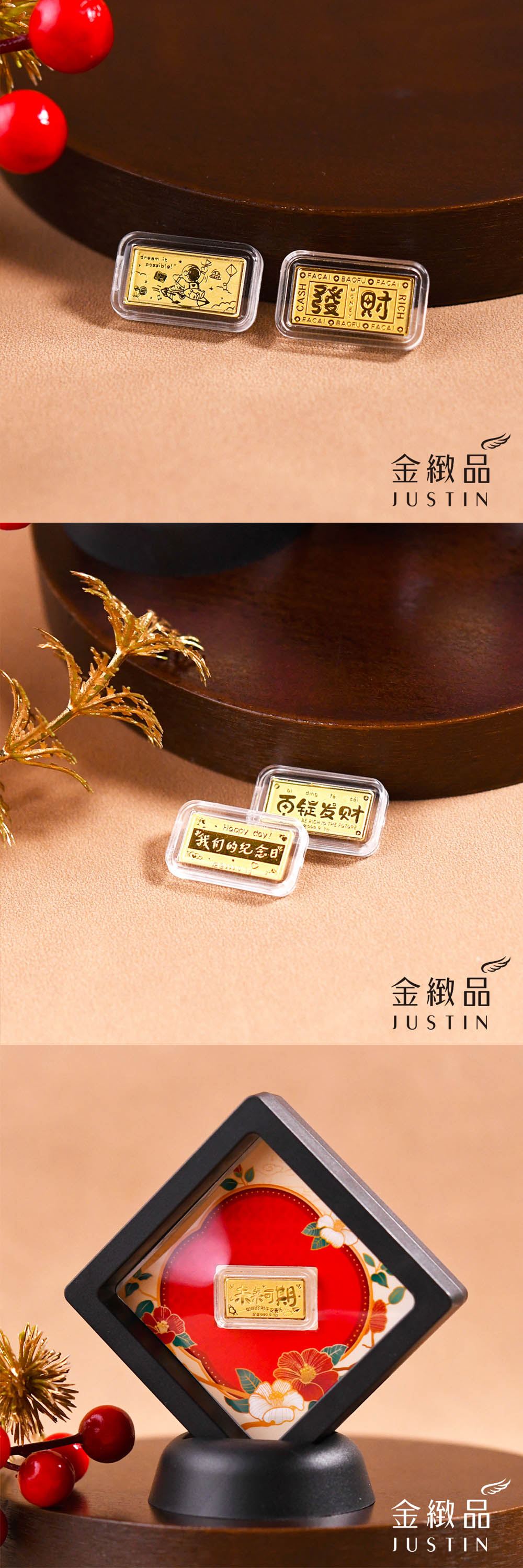 黃金金子 招財五帝錢精裝座 0.04錢 兩款選