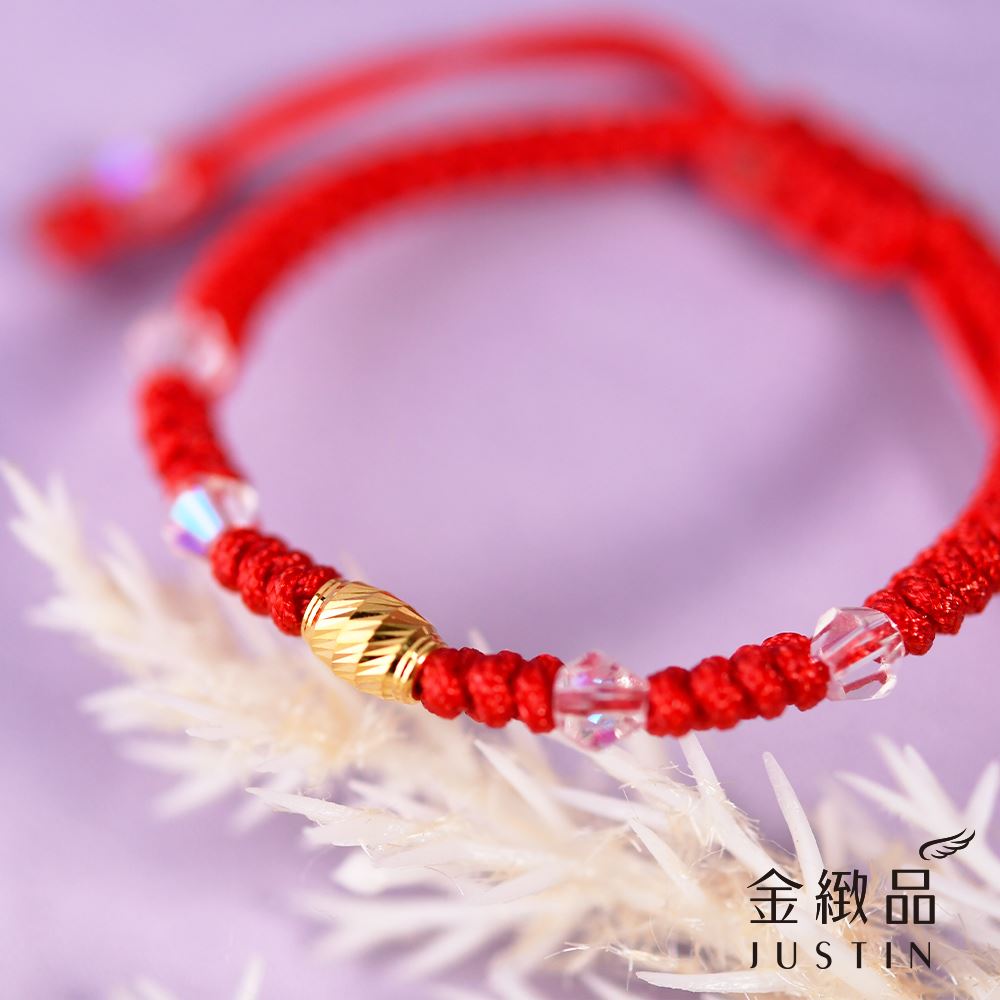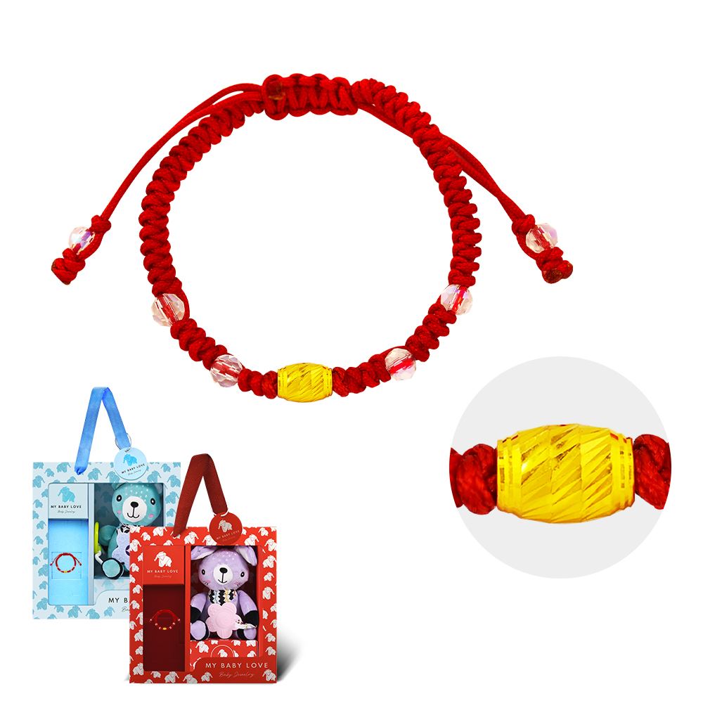 黃金兒禮 小福桶 紅繩手鍊 0.06錢 刻花隨機