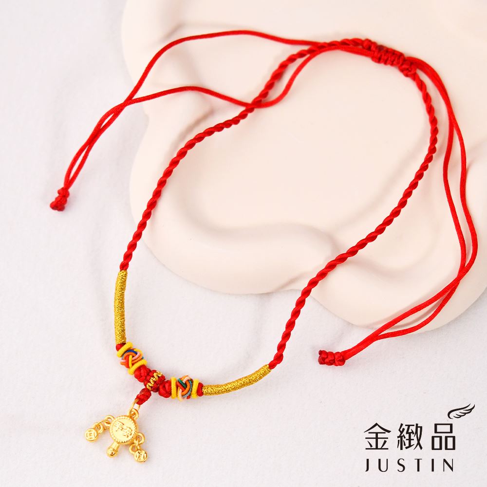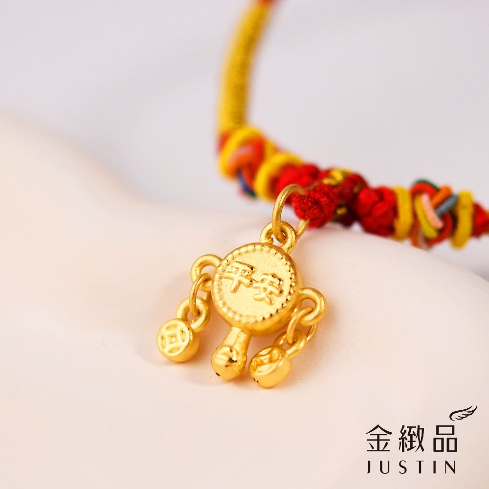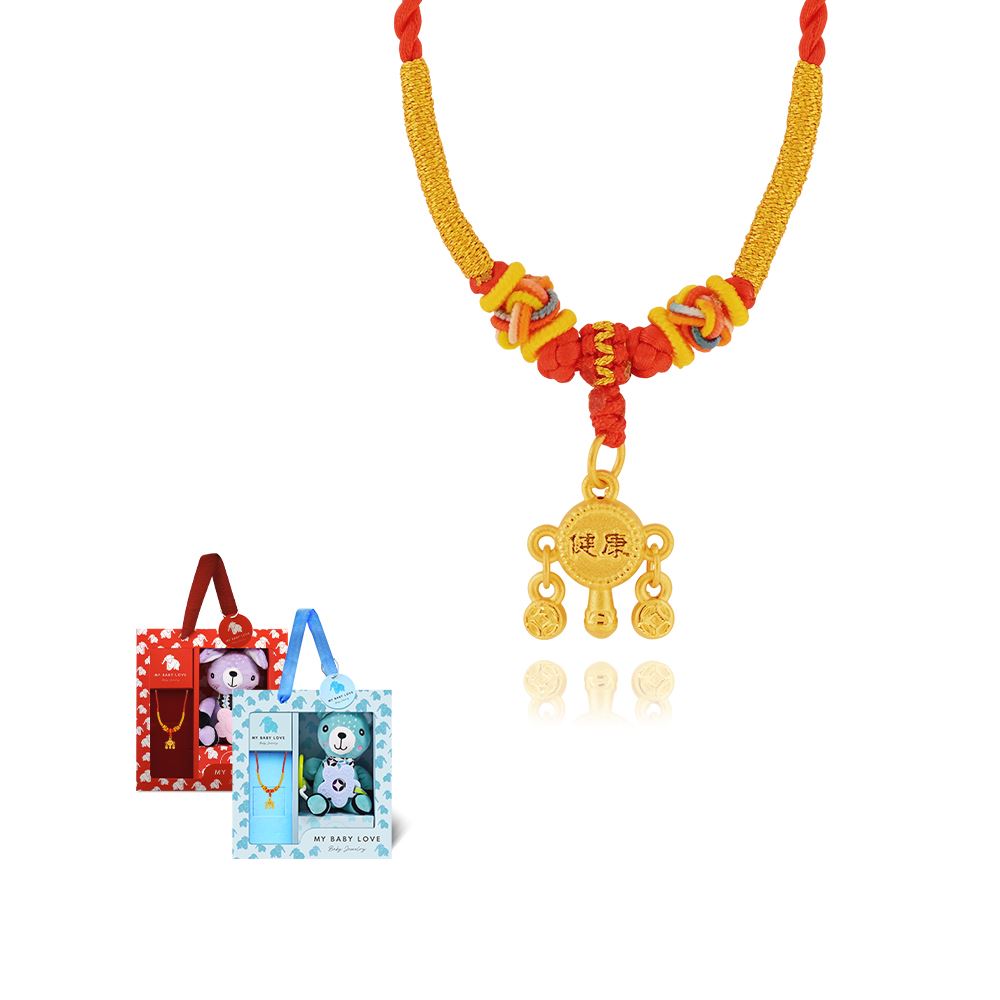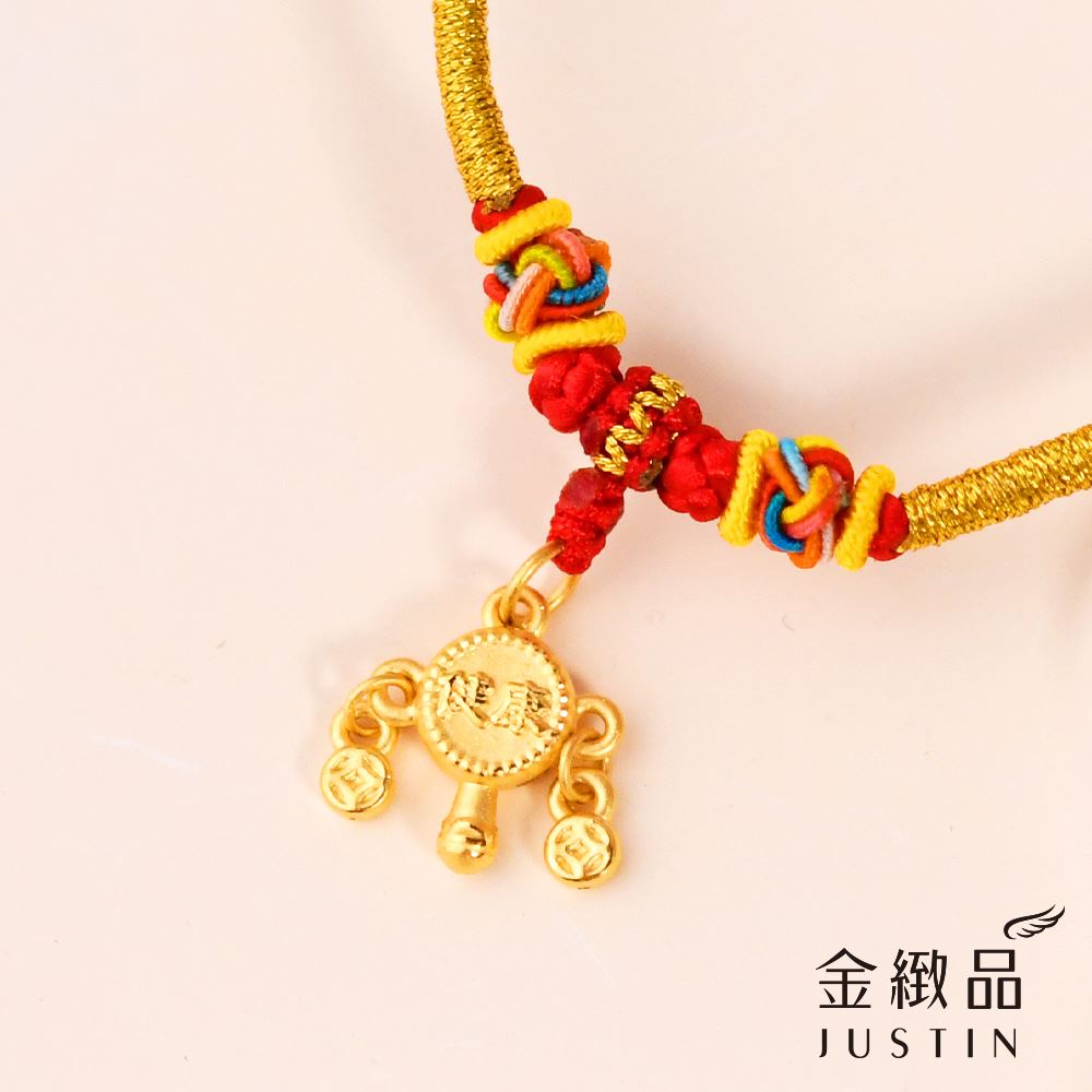 黃金兒禮 平安鈴鼓 彩繩鍊 0.38錢