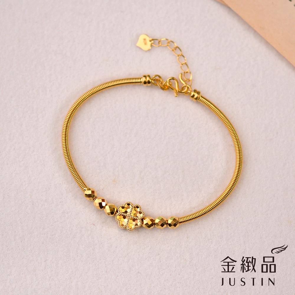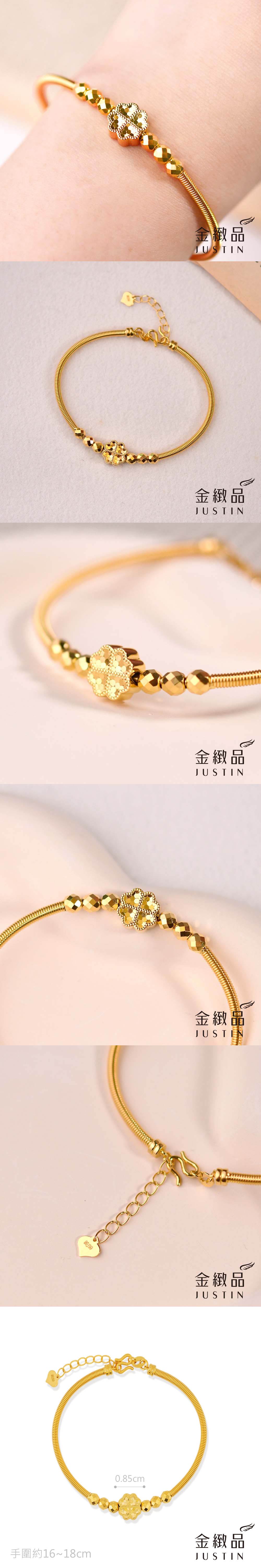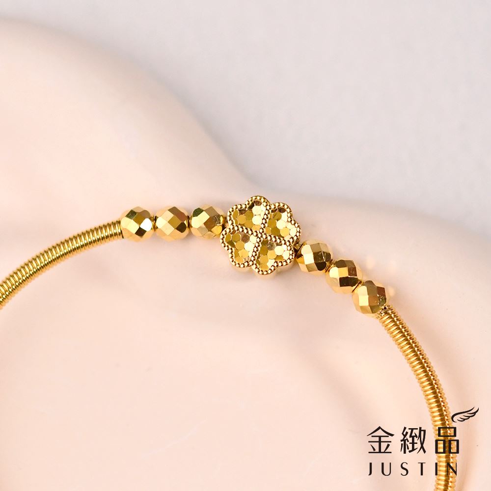 單顆幸運草搭著六點金光,讓整圈手環呈現低調卻不失亮度的平衡