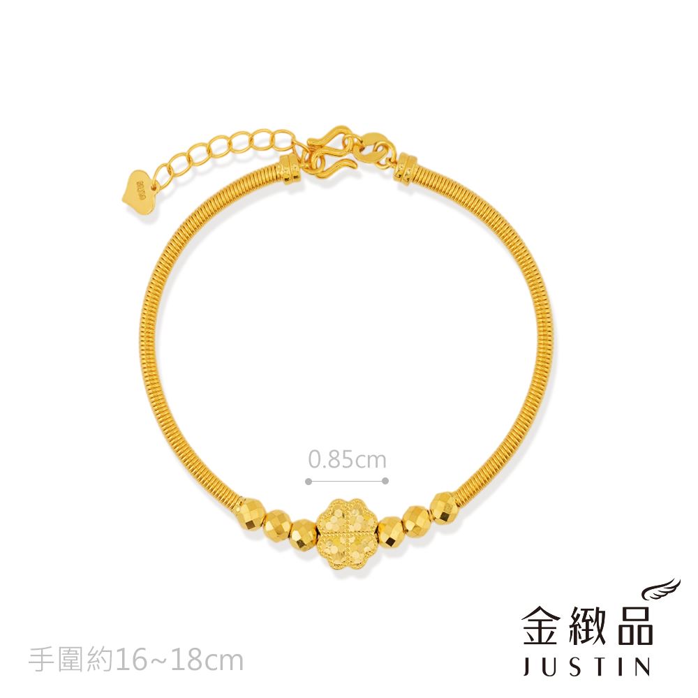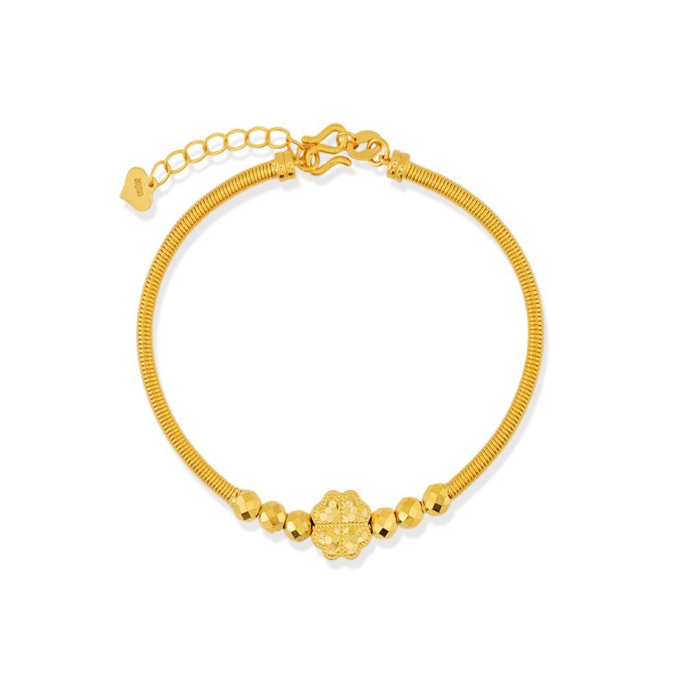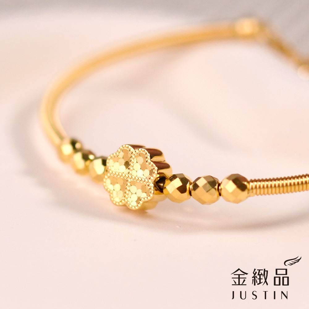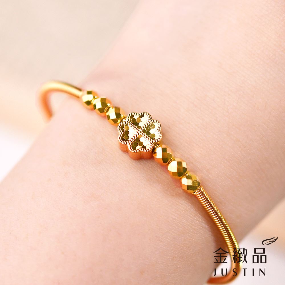 單顆幸運草搭著六點金光,讓整圈手環呈現低調卻不失亮度的平衡