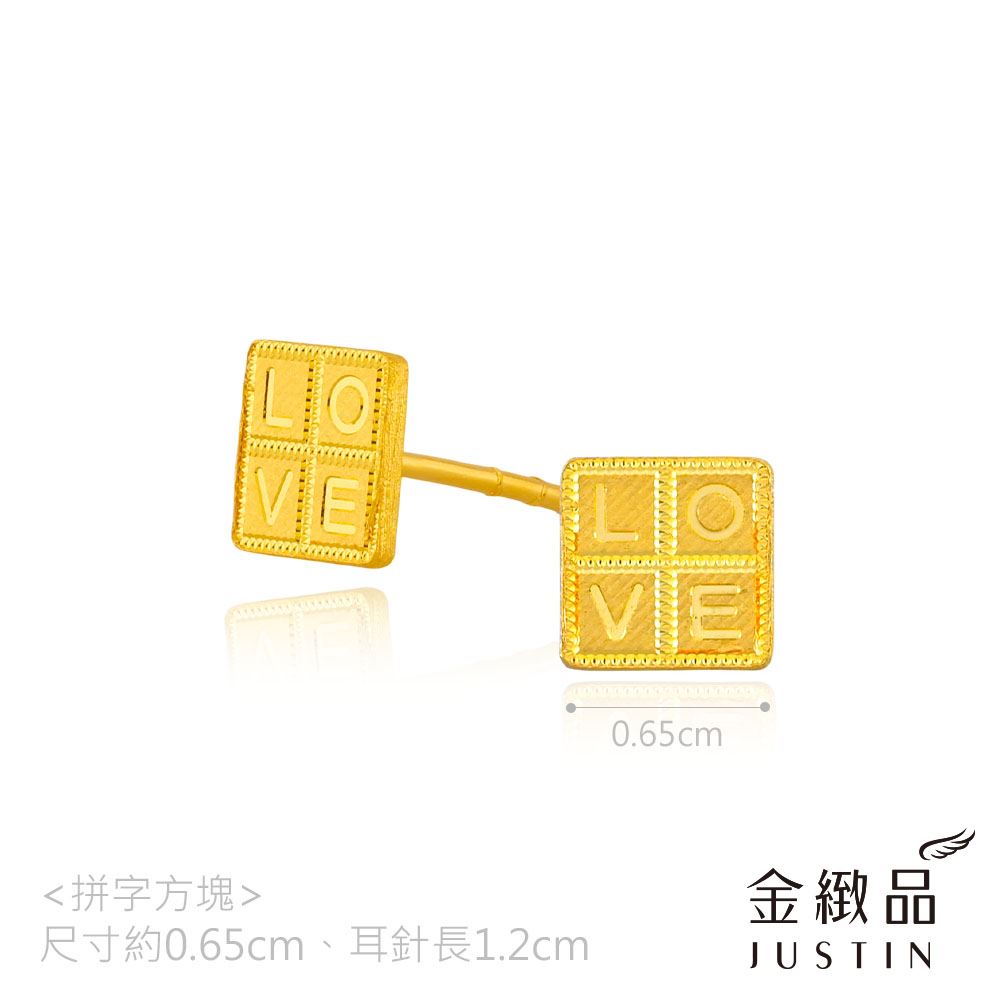 黃金耳環 LOVE拼字方塊 5G 0.4錢