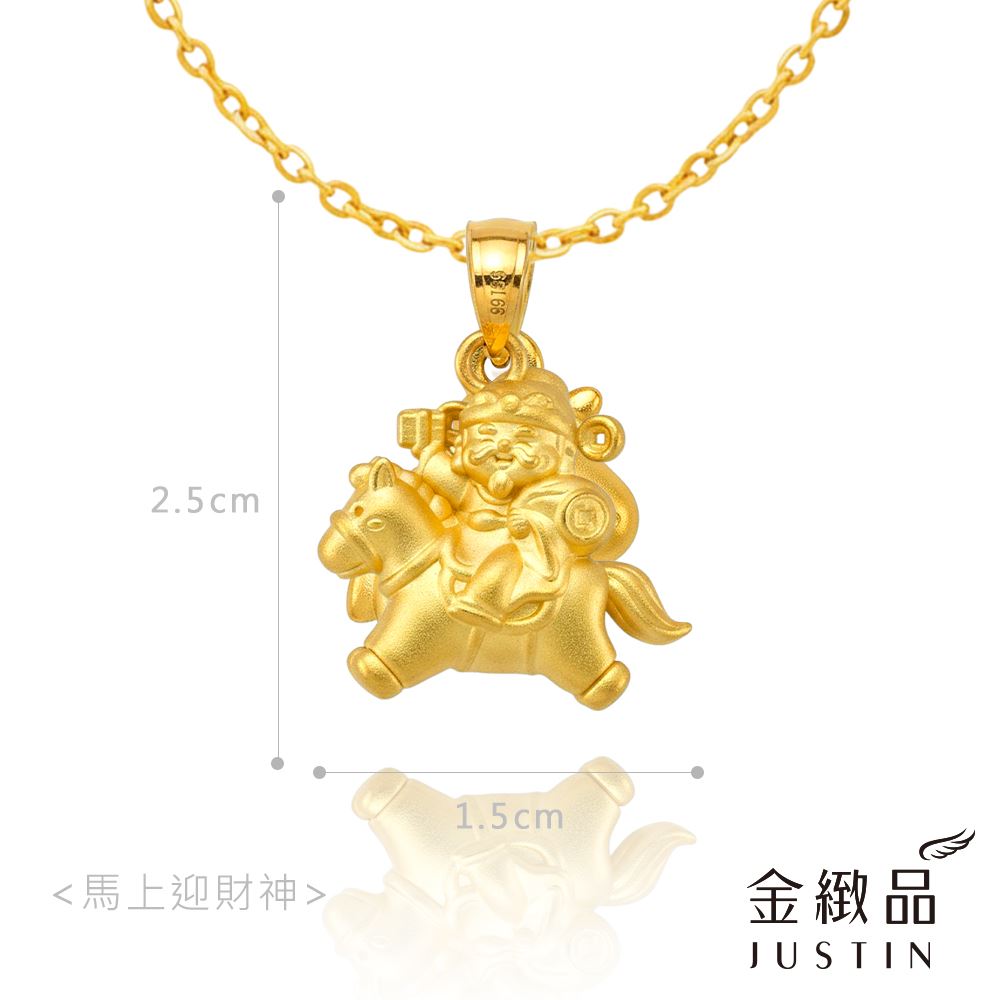 精緻打造立體財神騎馬造型,象徵「馬上有財、富貴臨門」,將傳統吉祥寓意融入日常配戴之中。