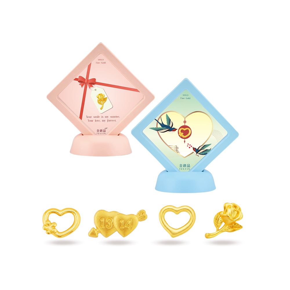 【獨家設計】黃金擺件 浪漫之愛精裝座 0.04錢 多款選