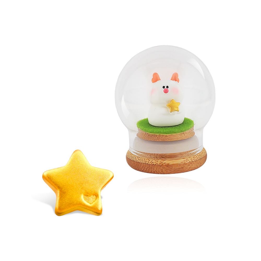 【獨家設計】星願雪人寶寶 玻璃球座 純金擺件 0.04錢