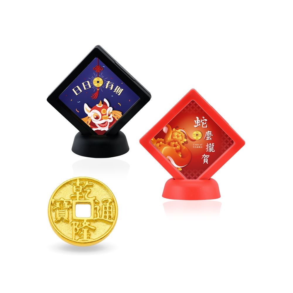 黃金金子 招財五帝錢精裝座 0.04錢 兩款選